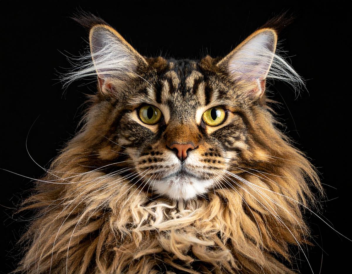 Le Maine Coon se distingue par sa grande taille et son pelage touffu.